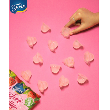 our Frix Lychee Flavoured Jelly with Nata De Coco. Each 15g cup is a delightful